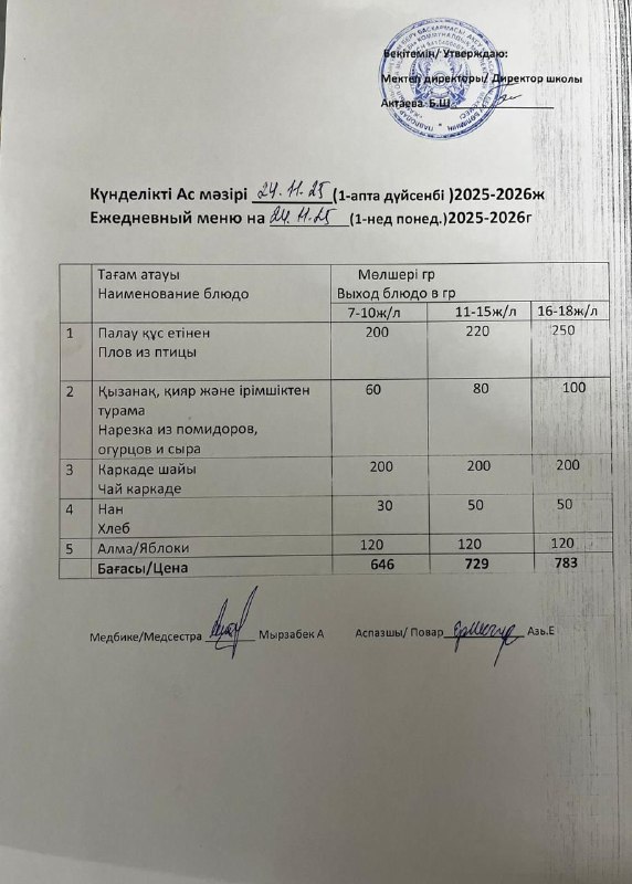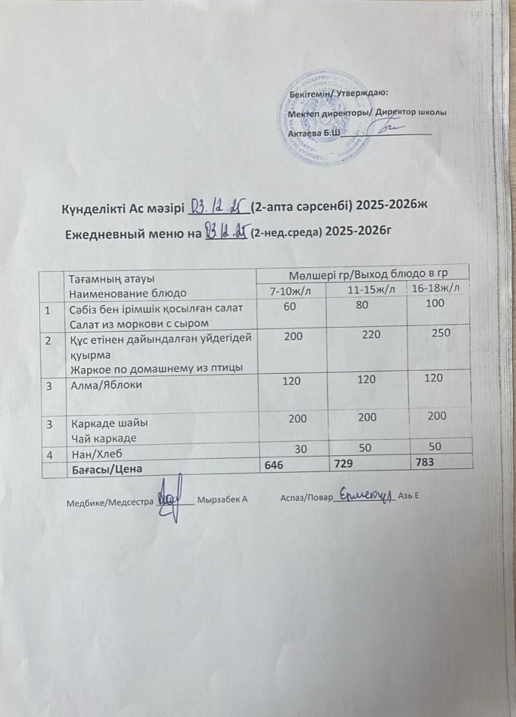 Жалпыға бірдей білім беру қорынан тегін ыстық тамақ беру туралы